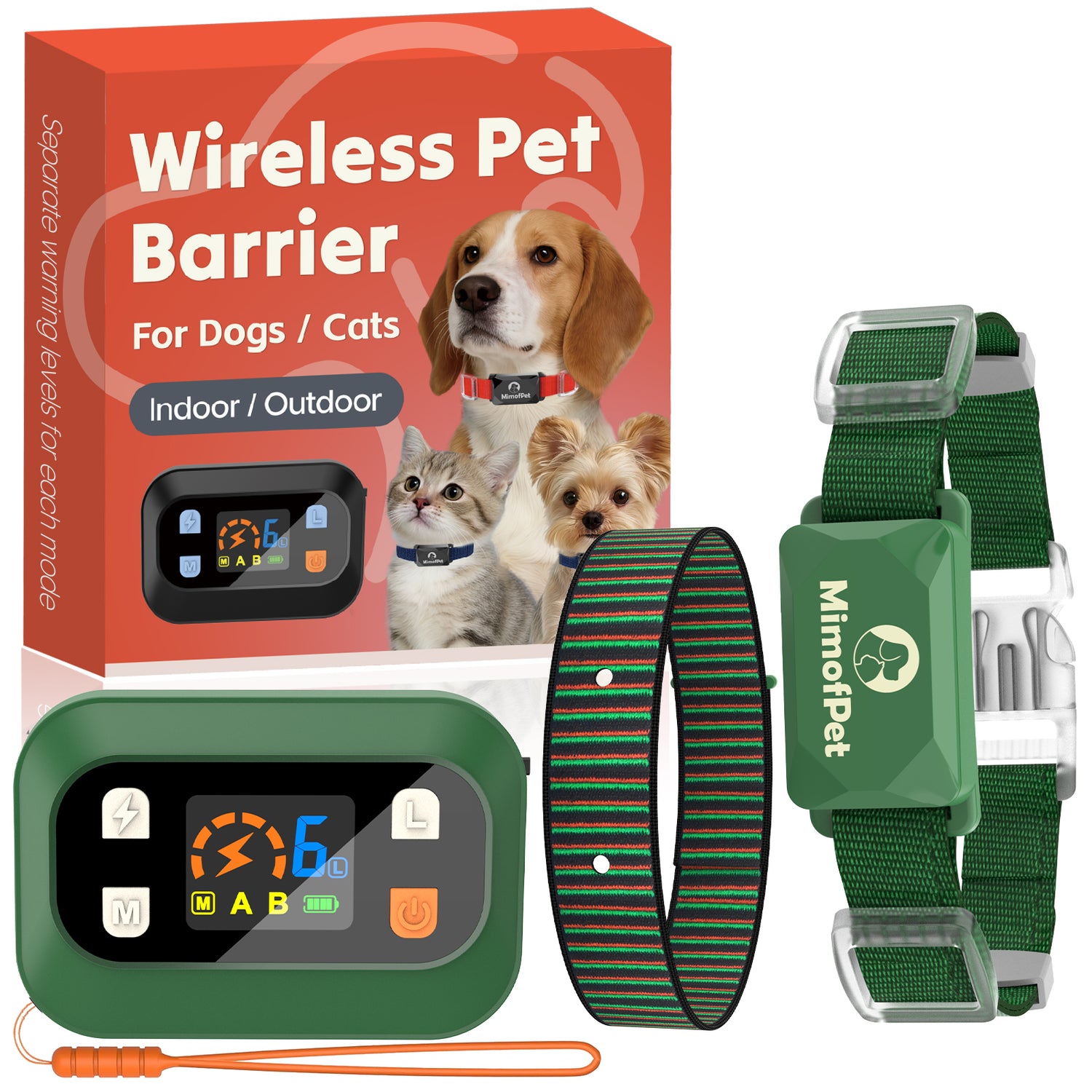 MIMOFPET Wireless Dog Fence for 2 Dogs - 25FT to 3500FT Electric Fence,185 Days Standby Time Training Collar,Pet Containment System with 3 Training Mode,Flash Light and Waterproof